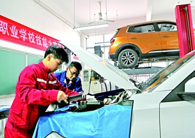 12月9日,安徽省淮南市第十五届中等职业学校技能大赛在淮南市职业教育中心、淮南卫生学校开赛,来自淮南市15所中职学校435名选手参加护理、汽车维修、电子商务运营等25个项目比赛,活动旨在提升职业教育水平,培养学生一技之长。图为安徽省淮南市中职学校选手参加汽车维修比赛。陈彬摄/光明图片