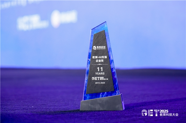 在大会同期举办的颁奖盛典上,海亮科技凭借在教育+AI领域的差异化优势与规模化成果,成功斩获“教育+AI先锋企业奖”,标志着海亮科技在教育领域的技术实力、场景落地能力,获得行业权威认可。